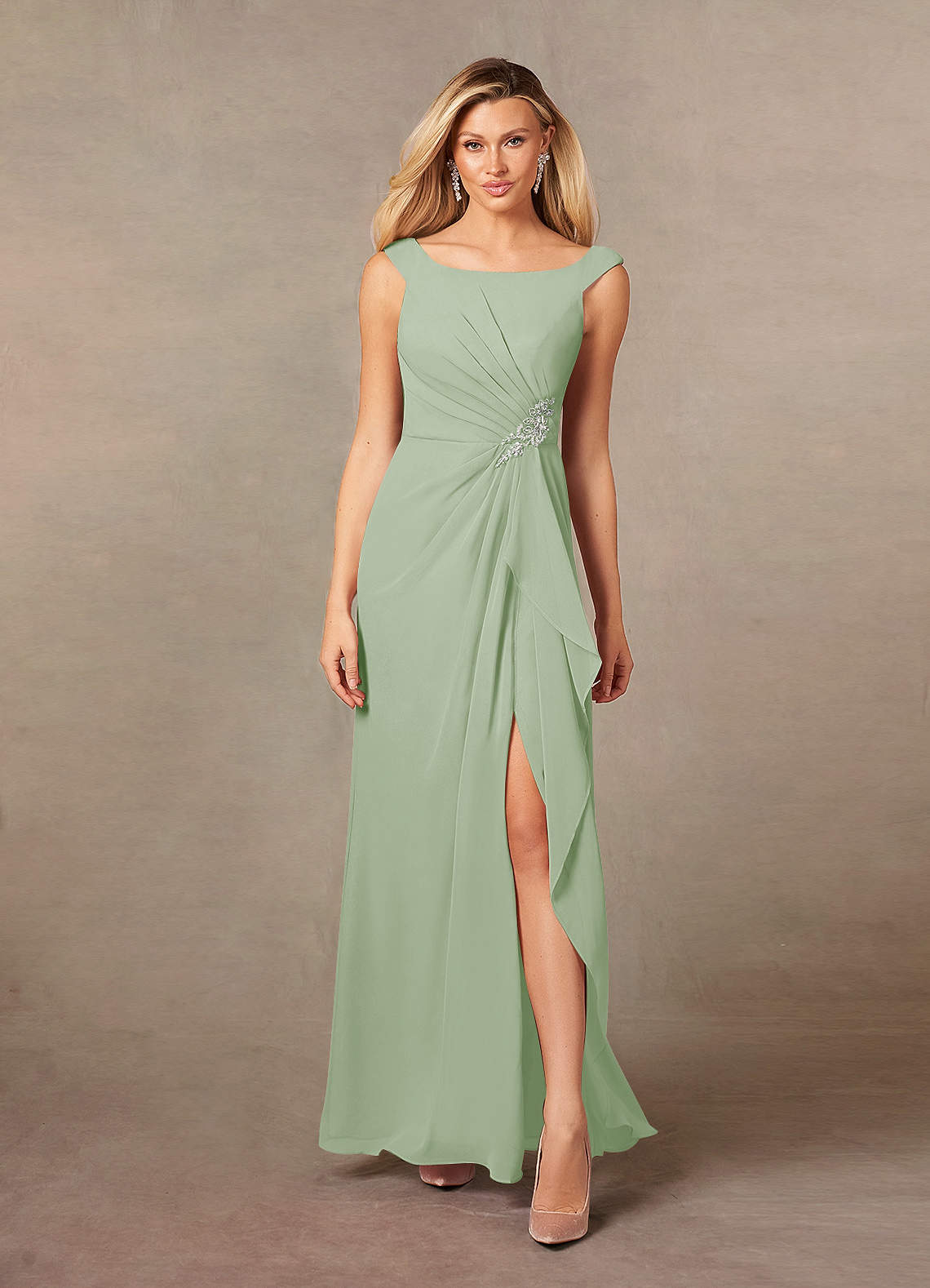 Vestido de Dark Navy de Gasa de Corte en A con Plisado