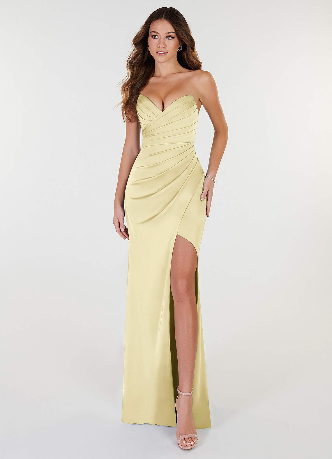 Vestido de Sorbete De Limón de Satén Elástico de Corte Recto Convertible con Cuello en V Plisado