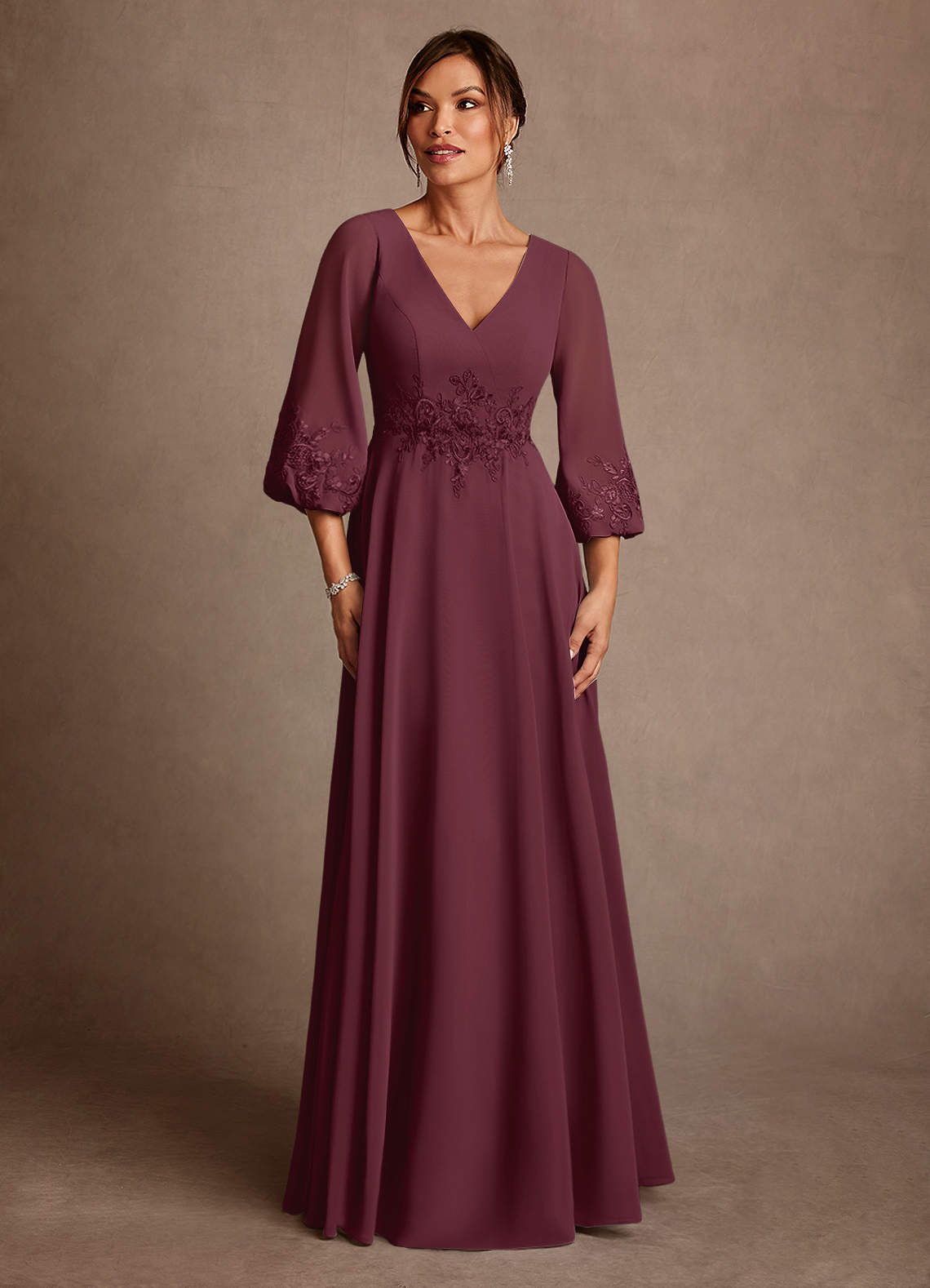 Vestido de Cabernet de Gasa de Corte en A con Encaje