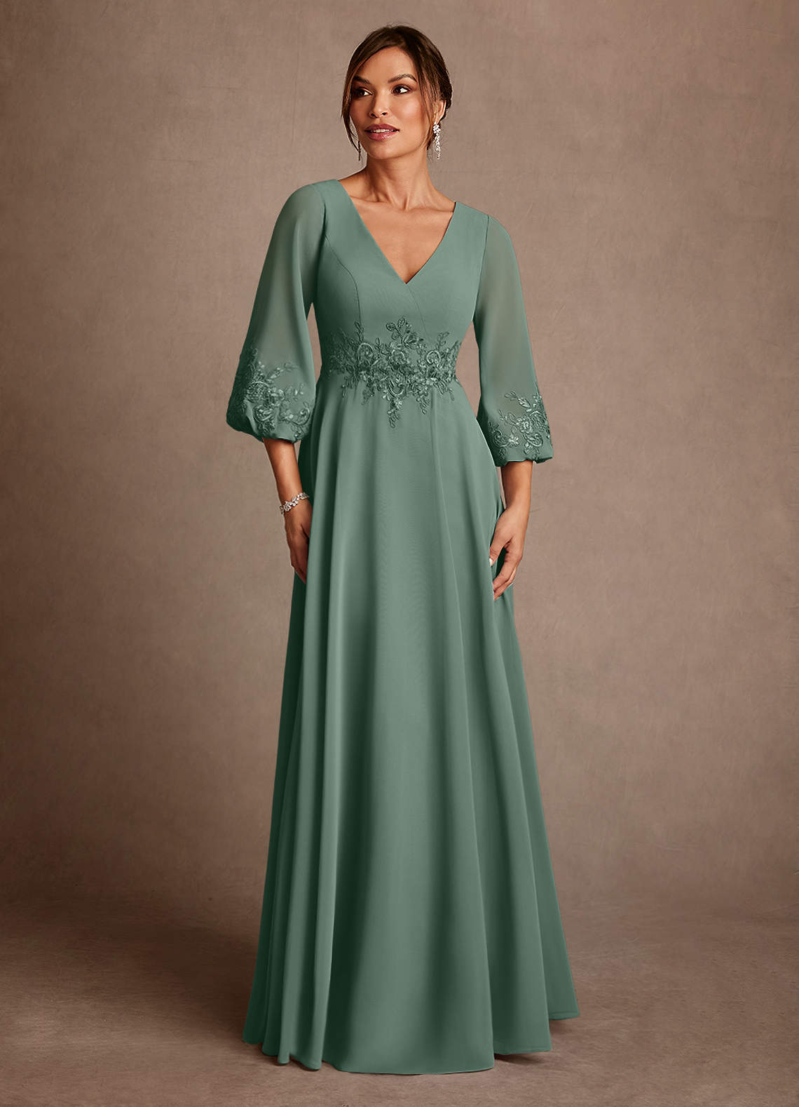 Vestido de Eucalipto de Gasa de Corte en A con Encaje