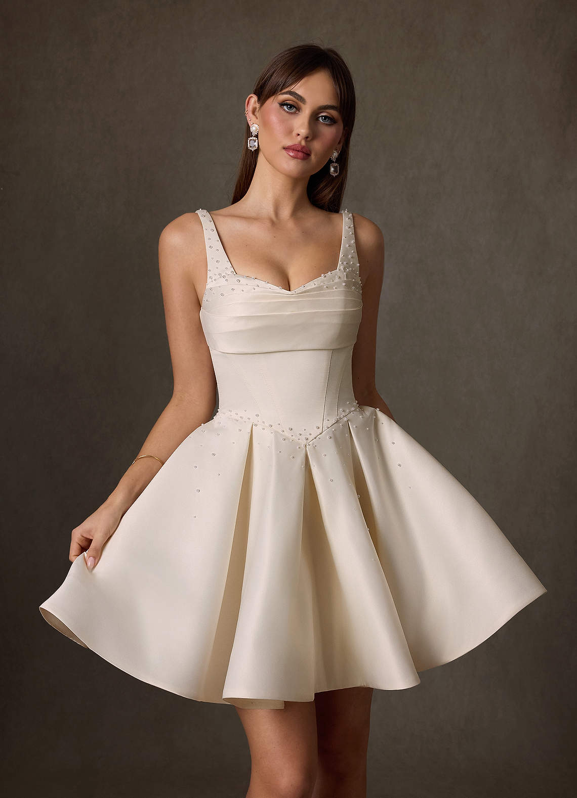 Vestido de Champán de Satén de Corte en A con Escote de Corazón
