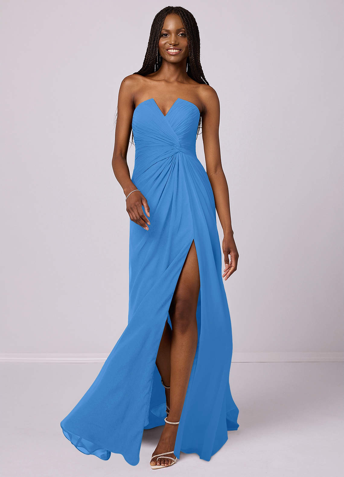 Vestido de Azul Grisaceo de Gasa de Corte Sirena Convertible con Sin tirantes Azul Grisaceo