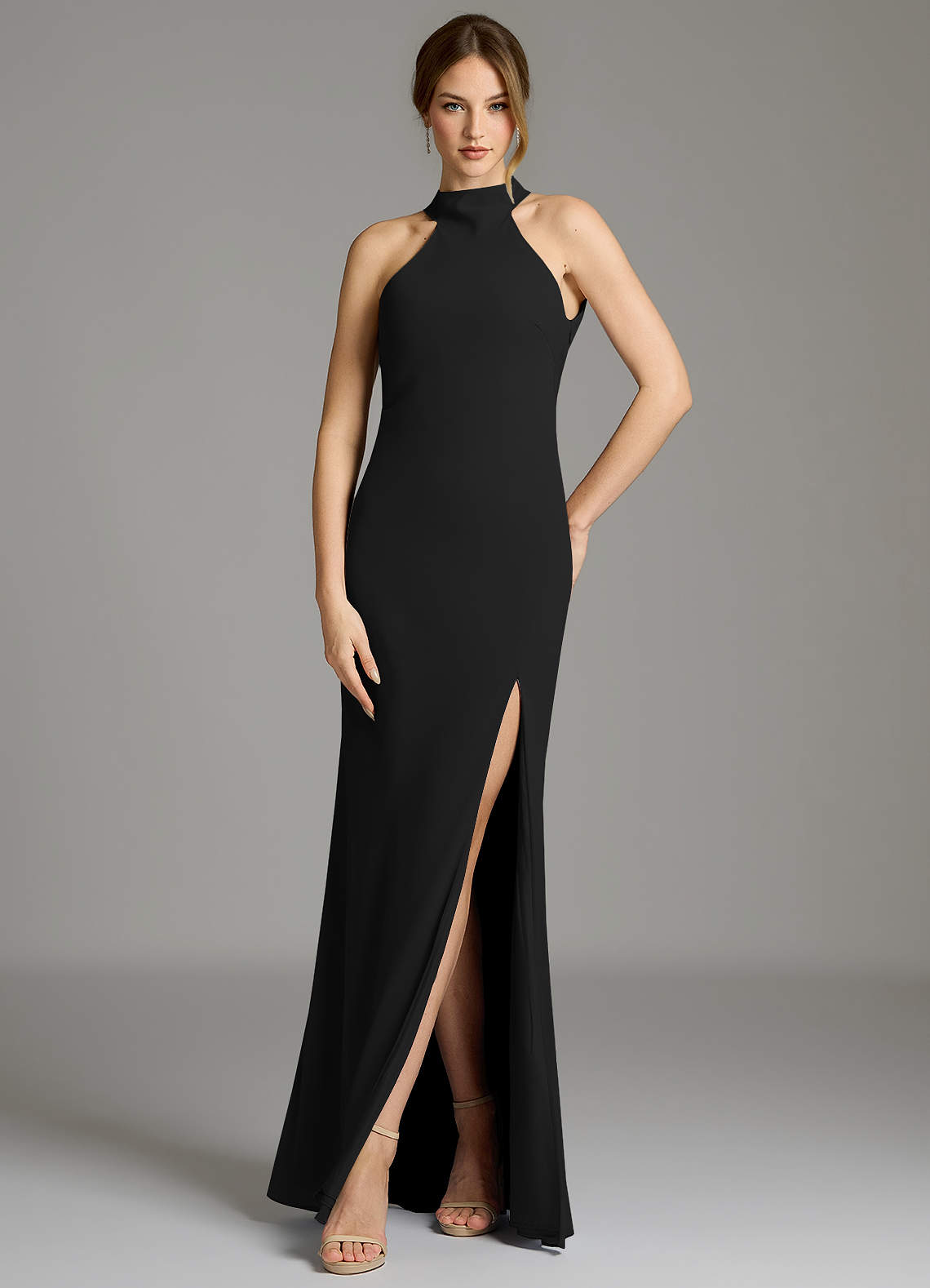 Vestido de Negro de Gasa de Corte Sirena con Plisado