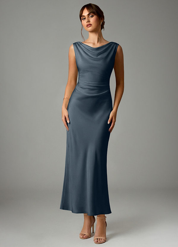 My bridesmaids wore Twilight knee-length dresses with a champagne sash around the waist for an earthy, conservative color combination. It was perfect for our indoor rustic wedding theme in the middle of fall. Twilight added a mystical feel to our venue.