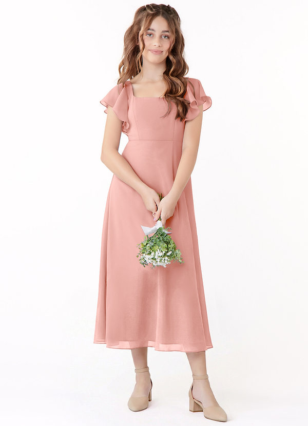 A-linja Rypytetty Sifonki Tee-pituus Nuorempi morsiusneito Pukeutua