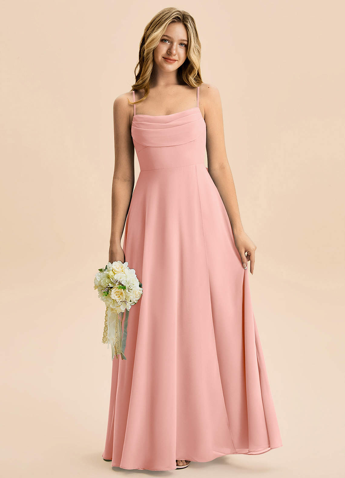 A-linja Pliseerattu Sifonki Lattian pituus Nuorempi morsiusneito Pukeutua