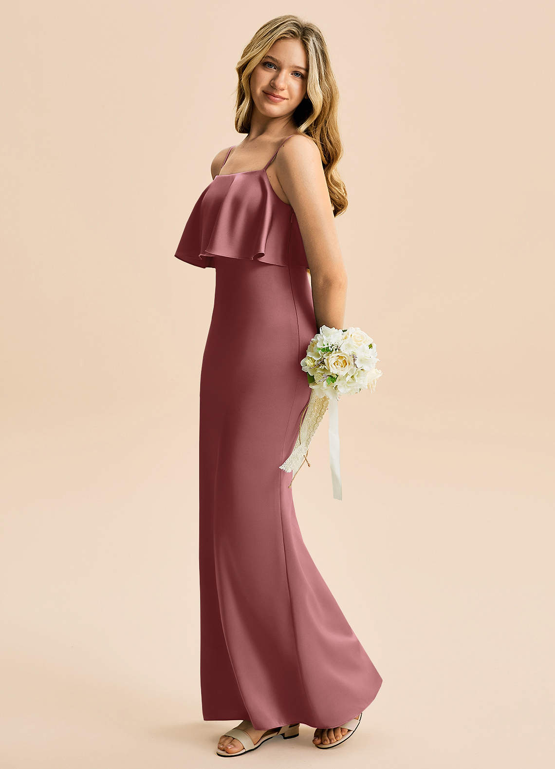 Mrenneito Joustava satiini Lattian pituus Nuorempi morsiusneito Pukeutua