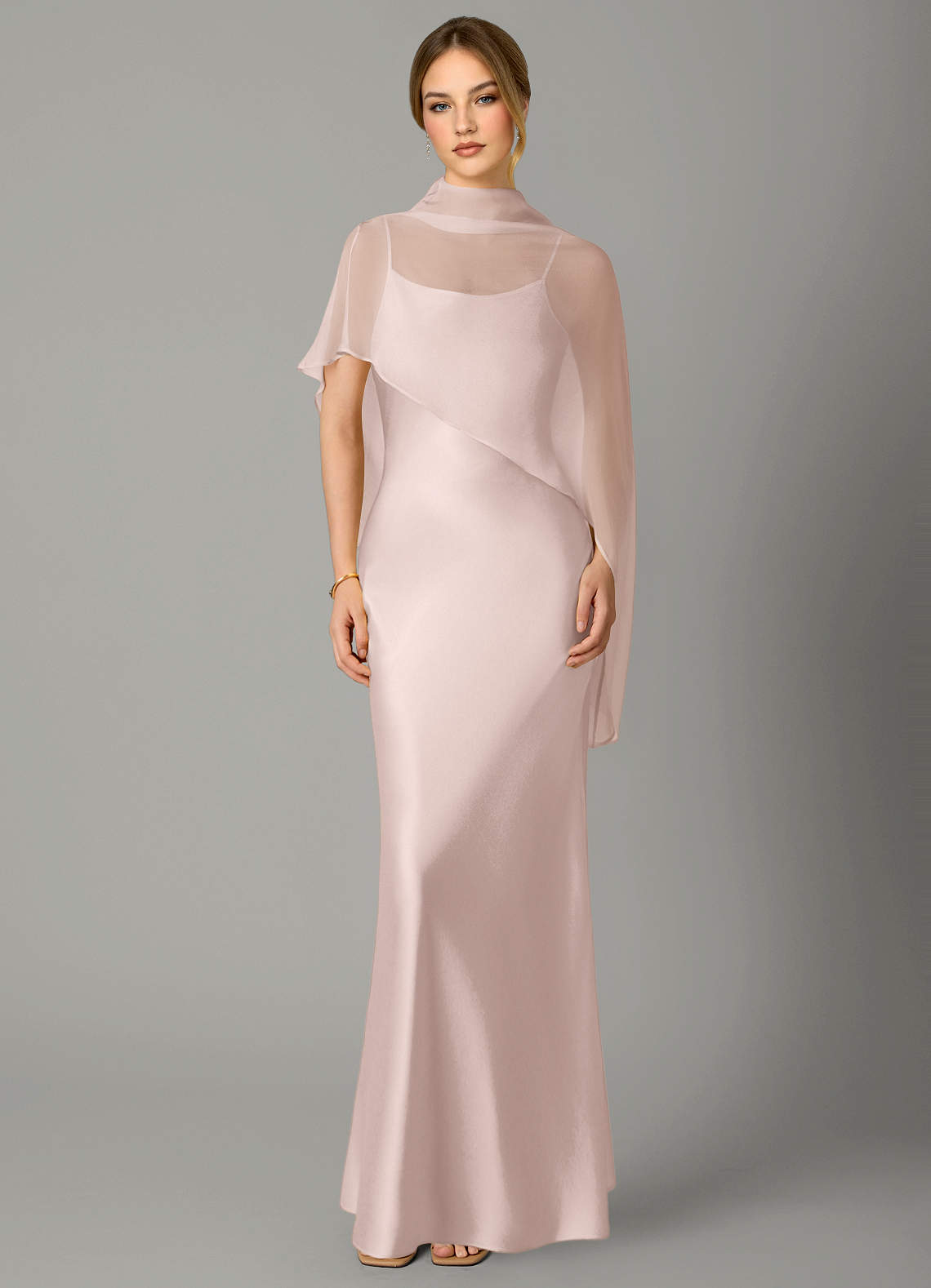 A-linja Korkea kaulus Joustava satiini Lattian pituus Pukeutua