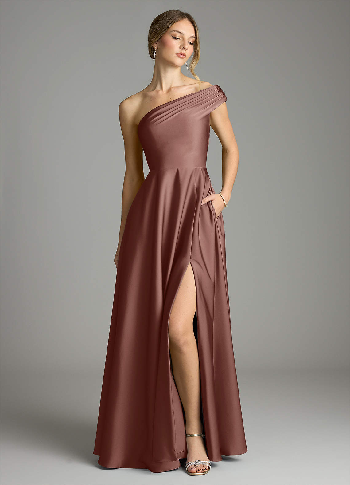 A-linja Olkapään ulkopuolella Joustava satiini Lattian pituus Pukeutua