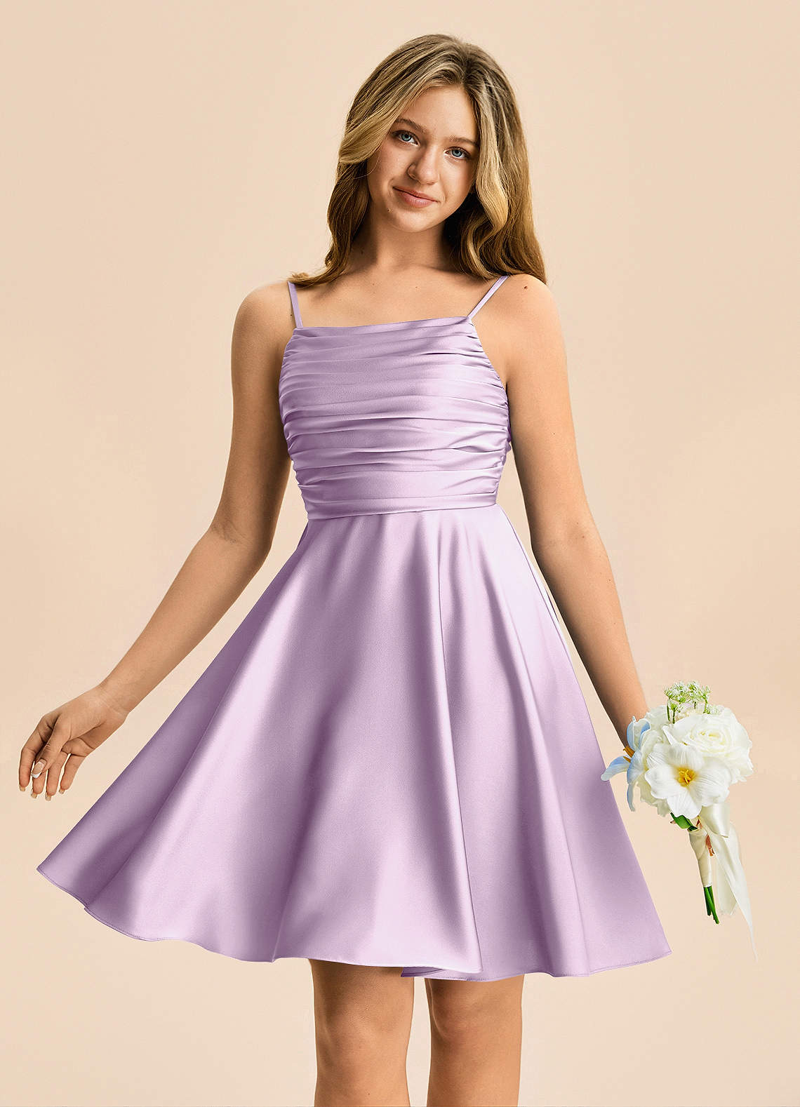 A-linja Pliseerattu Joustava satiini Mini Nuorempi morsiusneito Pukeutua