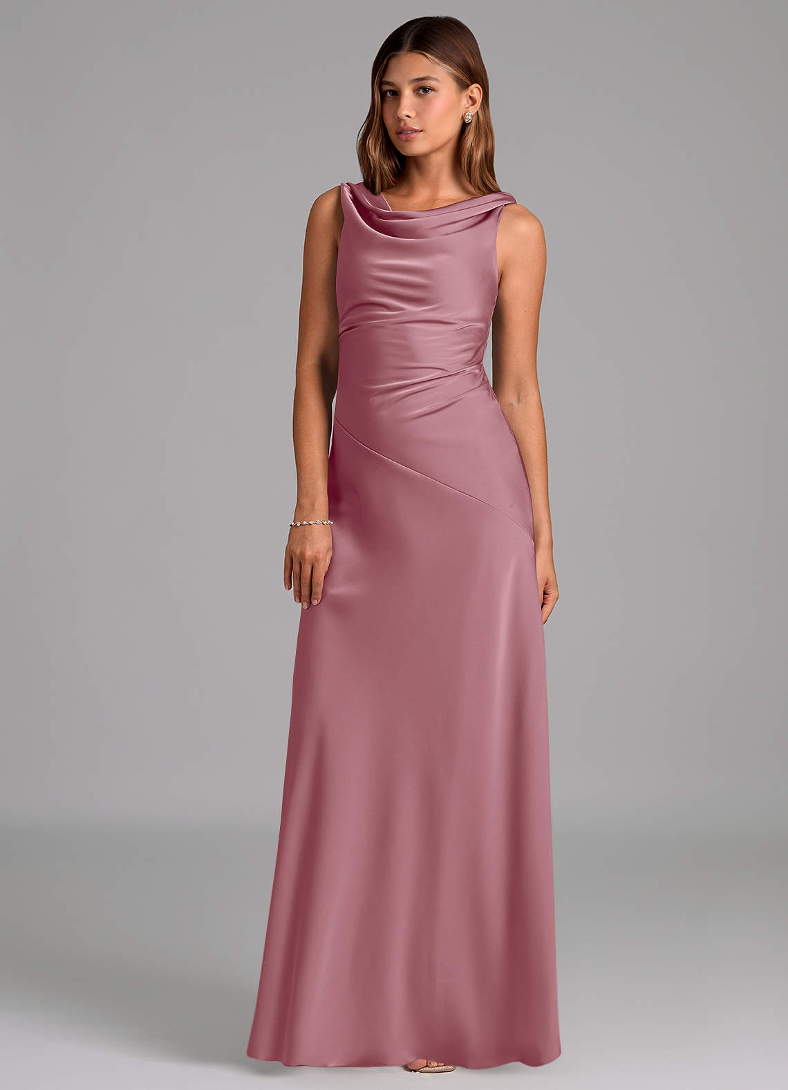 A-linja Pliseerattu Joustava satiini Lattian pituus Pukeutua