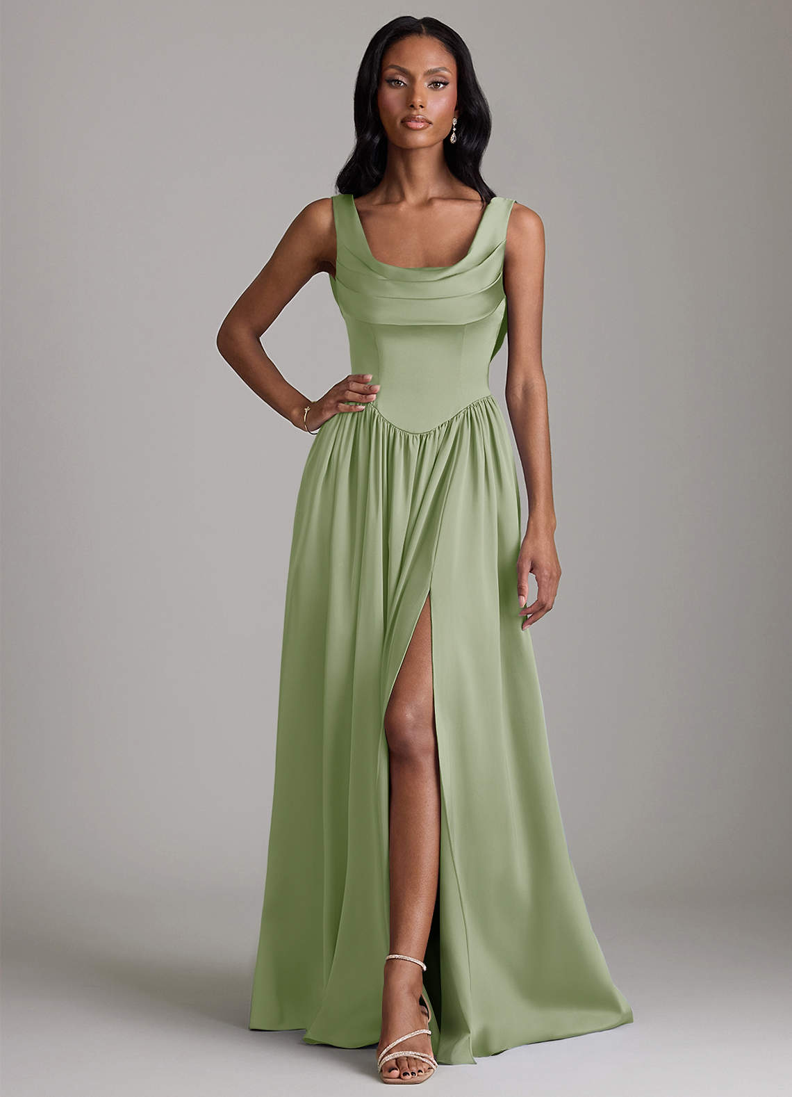 A-linja taskuilla Joustava satiini Lattian pituus Pukeutua