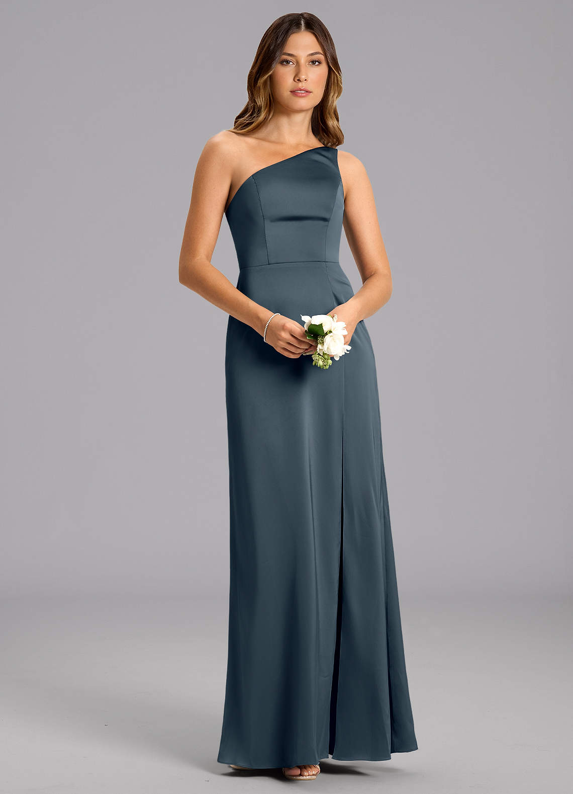 A-linja Yksi olkapää Joustava satiini Lattian pituus Pukeutua