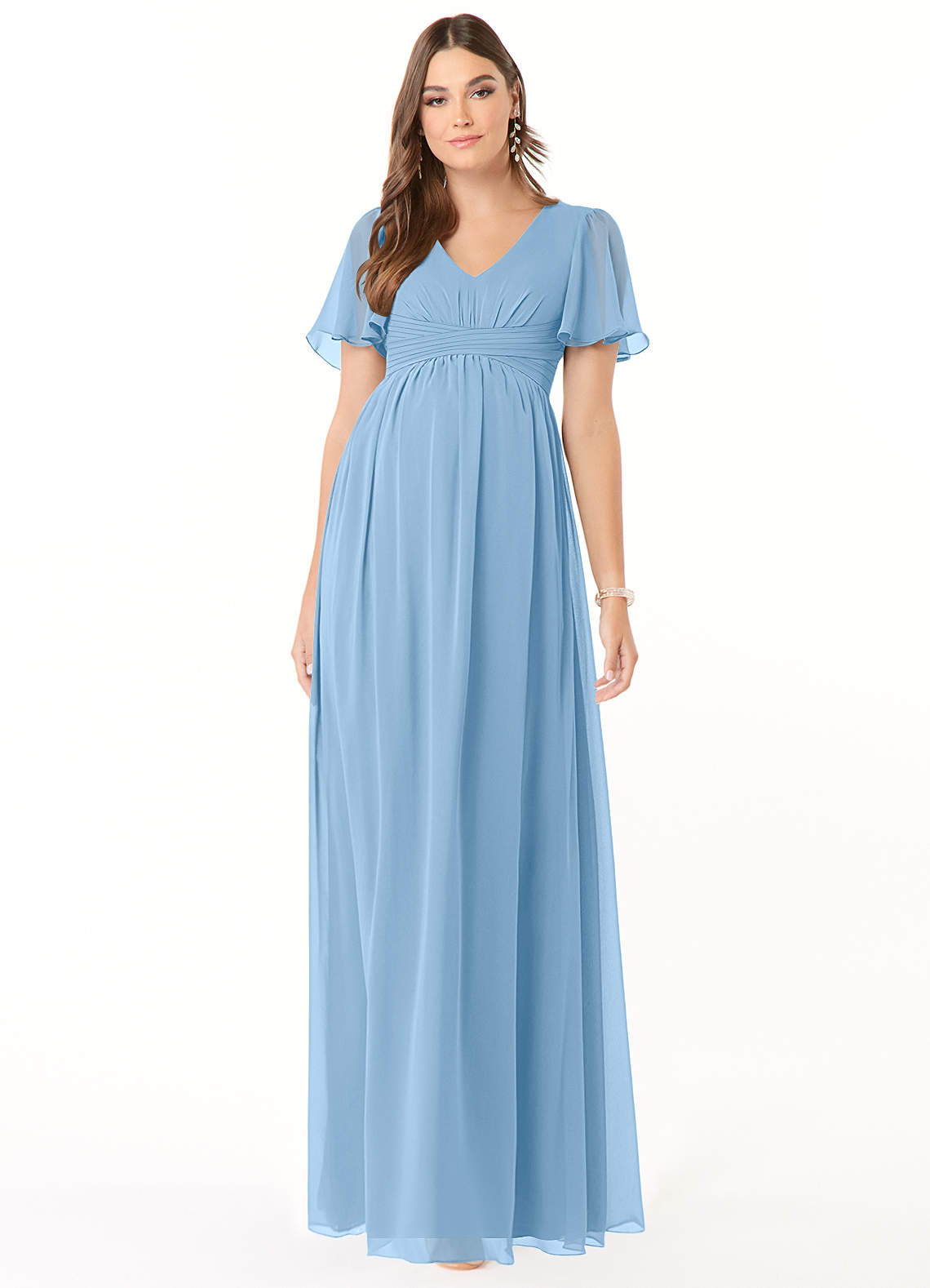 A-linja V-kaula rypytetty Sifonki Lattian pituus Pukeutua Puuterinsininen