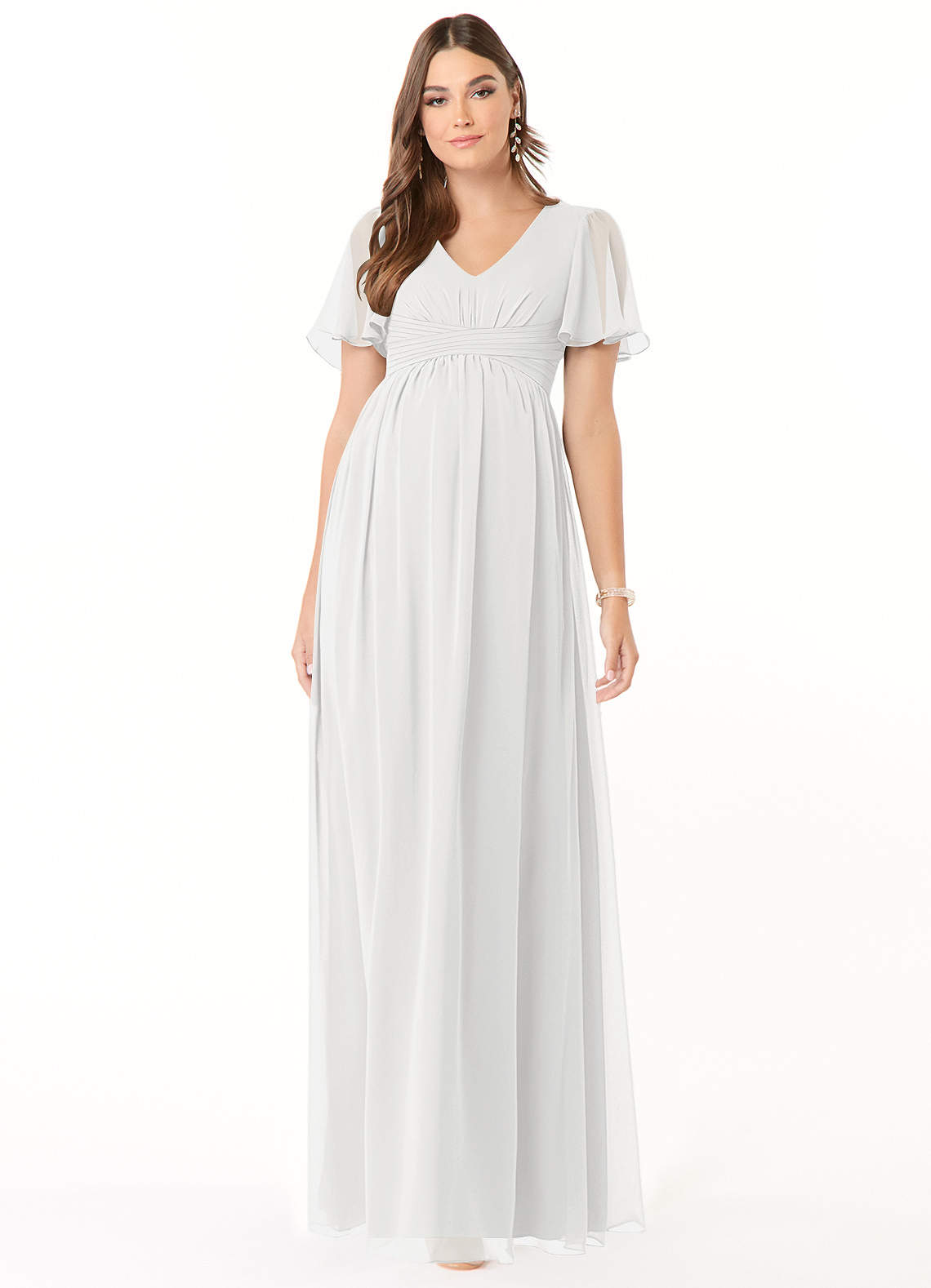 A-linja V-kaula rypytetty Sifonki Lattian pituus Pukeutua valkoinen