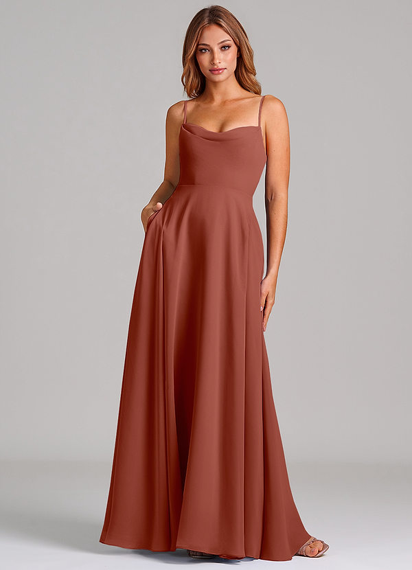 Robe Sirène en Mousseline de soie Col Haut Auburn