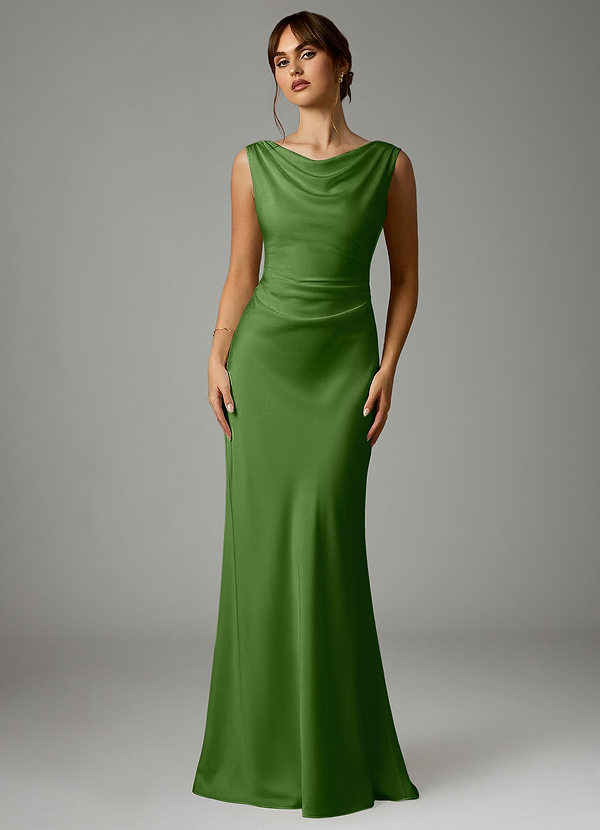 Robe Sirène Convertible en Satin extensible Épaule décolletée Basilic