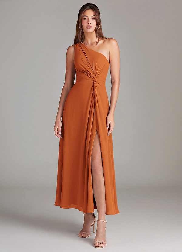 Robe Sirène en Mousseline de soie Une épaule Cannelle