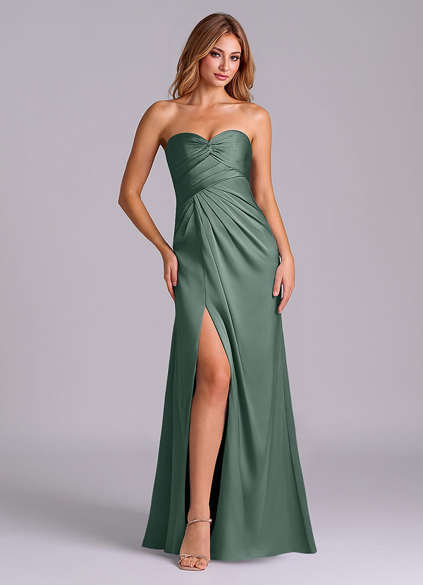Robe Fourreau Convertible en Satin extensible Sans bretelles Vert Sauge