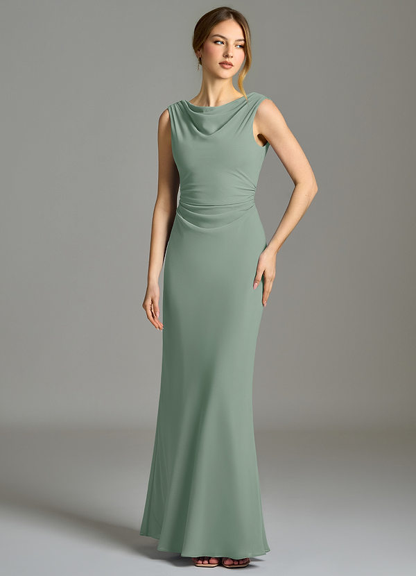 Robe Sirène en Mousseline de soie Plissée Vert Sauge