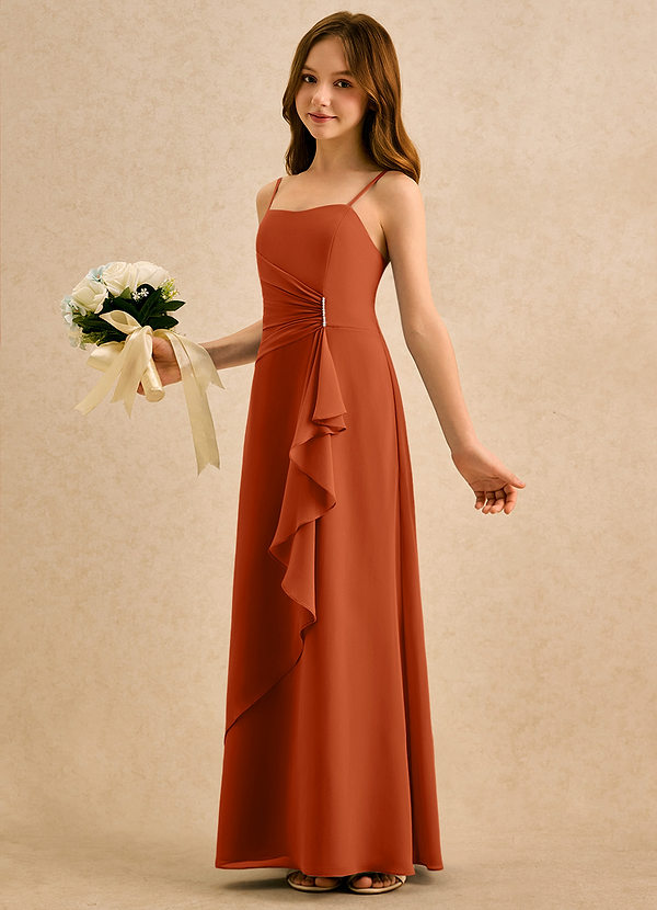 Robe Trapèze en Mousseline de soie Une épaule Orange Brûlée