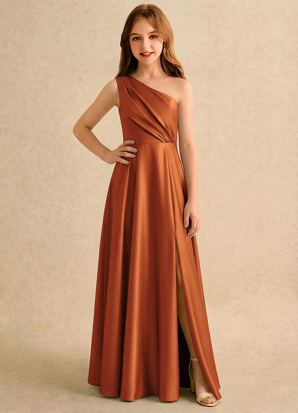 Robe Trapèze en Satin extensible Une épaule Cannelle