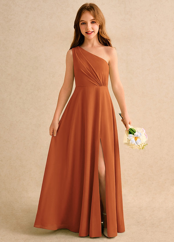 Robe Trapèze en Mousseline de soie Une épaule Cannelle