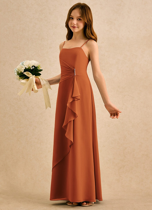 Robe Trapèze en Mousseline de soie Encolure en Forme de Cœur Cannelle