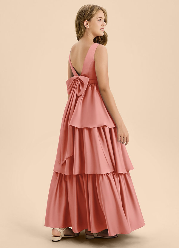 Robe Trapèze en Satin extensible Encolure en Forme de Cœur Corail