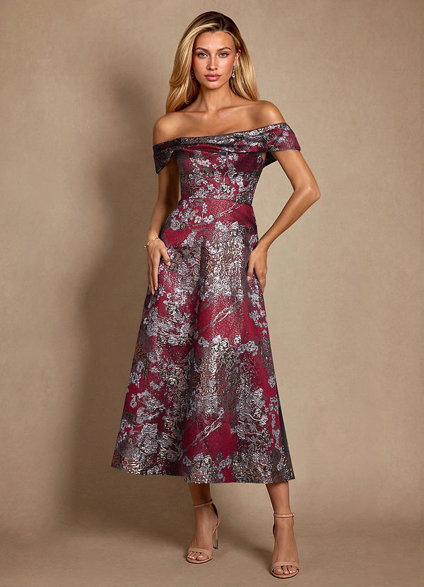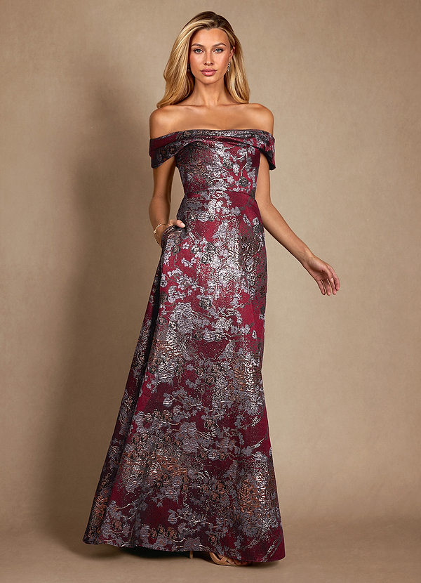Robe Sirène en Jacquard Floral Épaule décolletée Merlot Floral