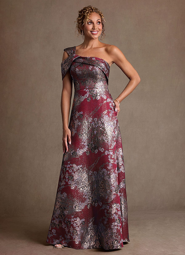 Robe Trapèze en Jacquard Floral Une épaule Merlot Floral