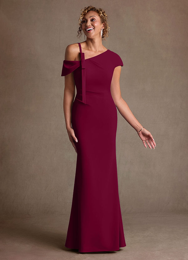 Robe Fourreau en Crêpe Élastique Épaule décolletée Bourgogne