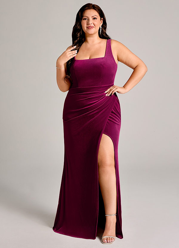 Robe Sirène en velours Plissée Cabernet
