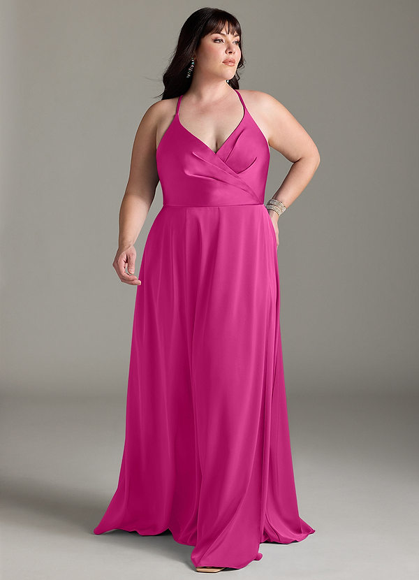 Robe Sirène en Satin extensible Plissée Fuchsia