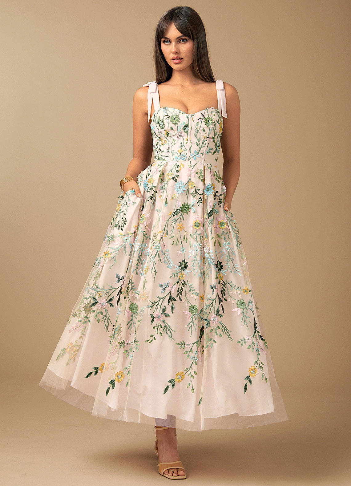 Robe Longue Rose Blush Multi Aurelie