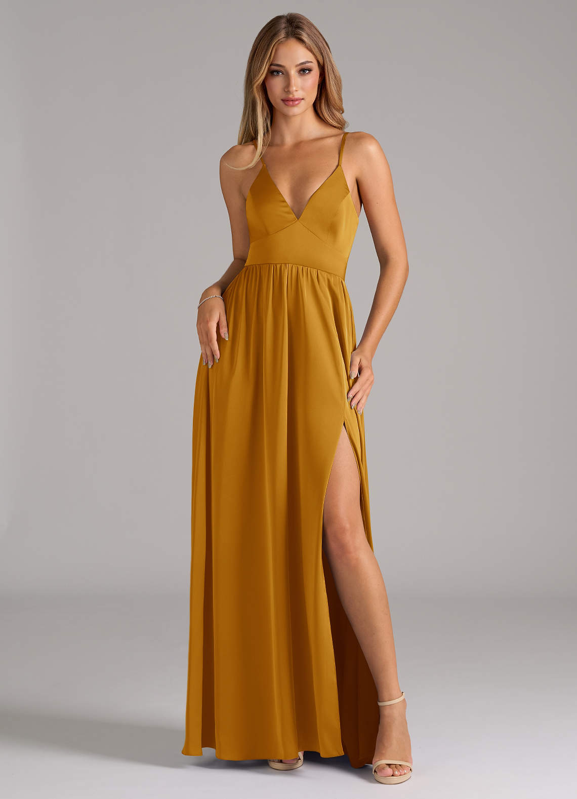 Robe Trapèze en Satin extensible Corset Caramel écossais