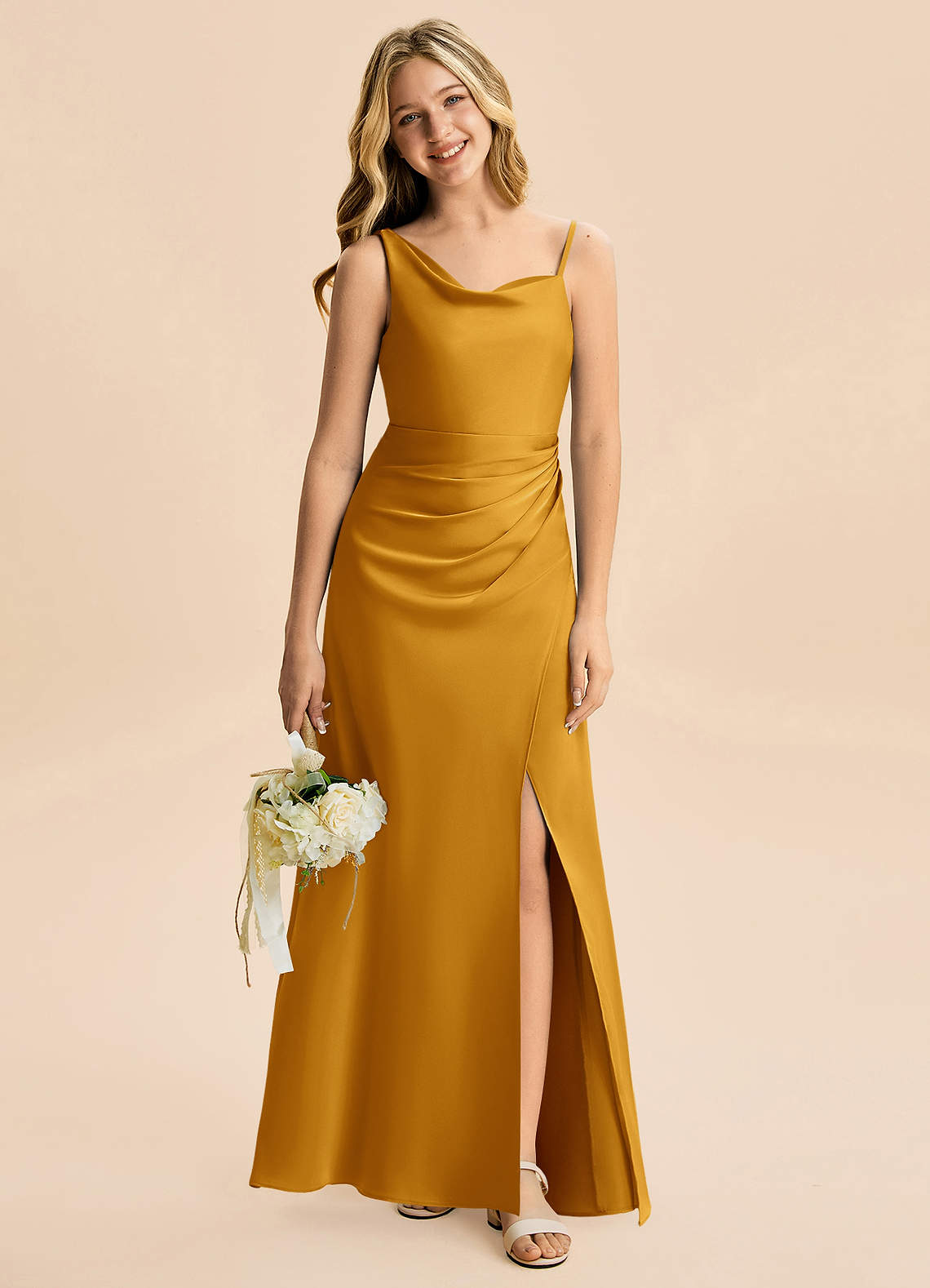Robe Trapèze en Satin extensible Plissée Caramel écossais