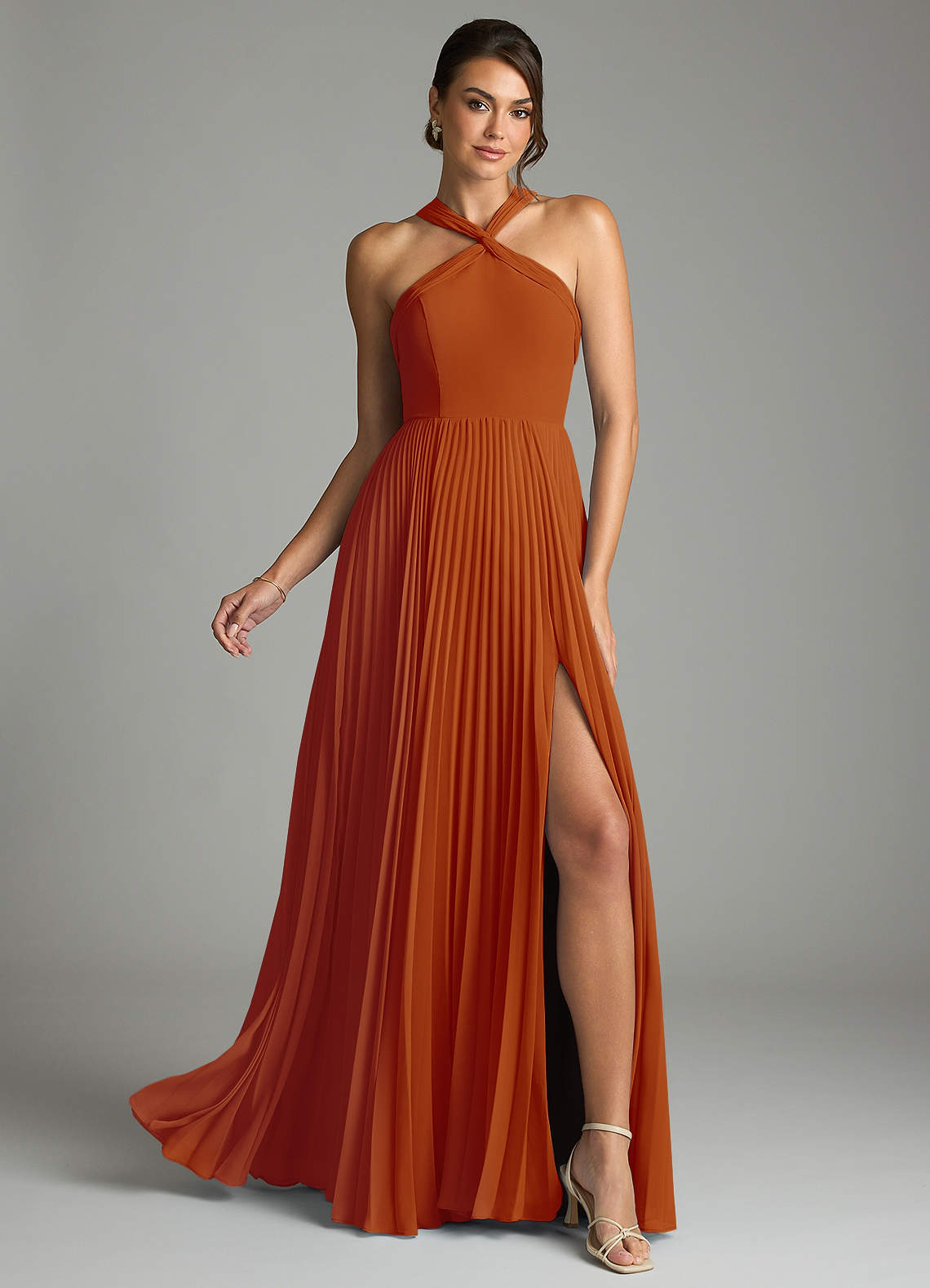 Robe Trapèze en Mousseline de soie Plissée Paprika
