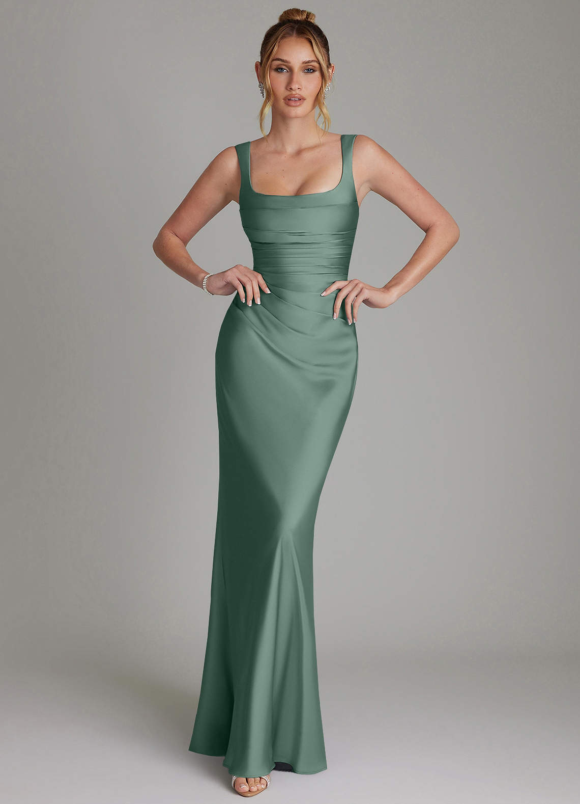 Robe Sirène en Satin extensible Corset Eucalyptus