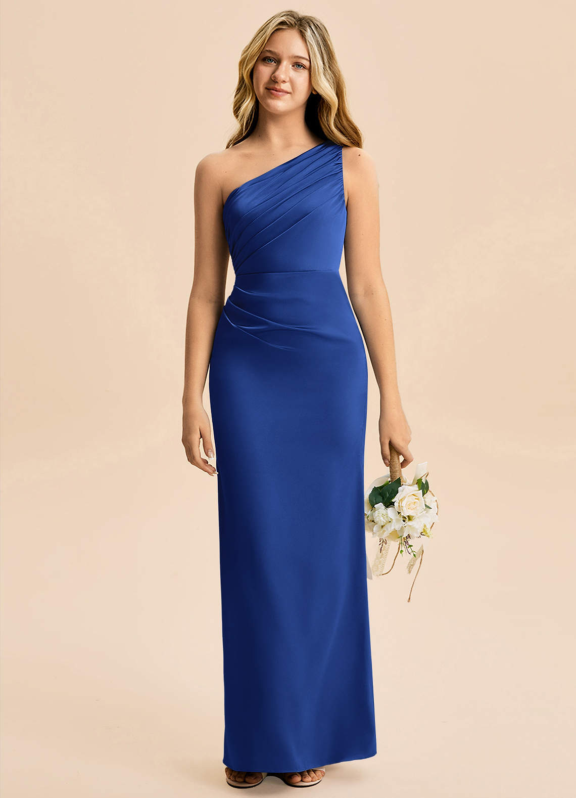 Robe Fourreau en Satin extensible Plissée Bleu Roi