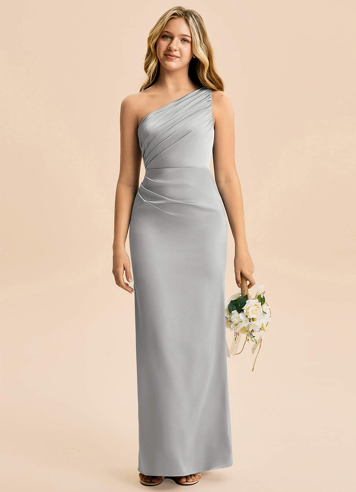 Robe Fourreau en Satin extensible Plissée Argent