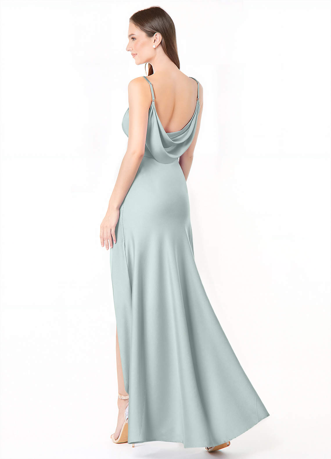 Robe Sirène en Satin extensible Fente Latérale Brume