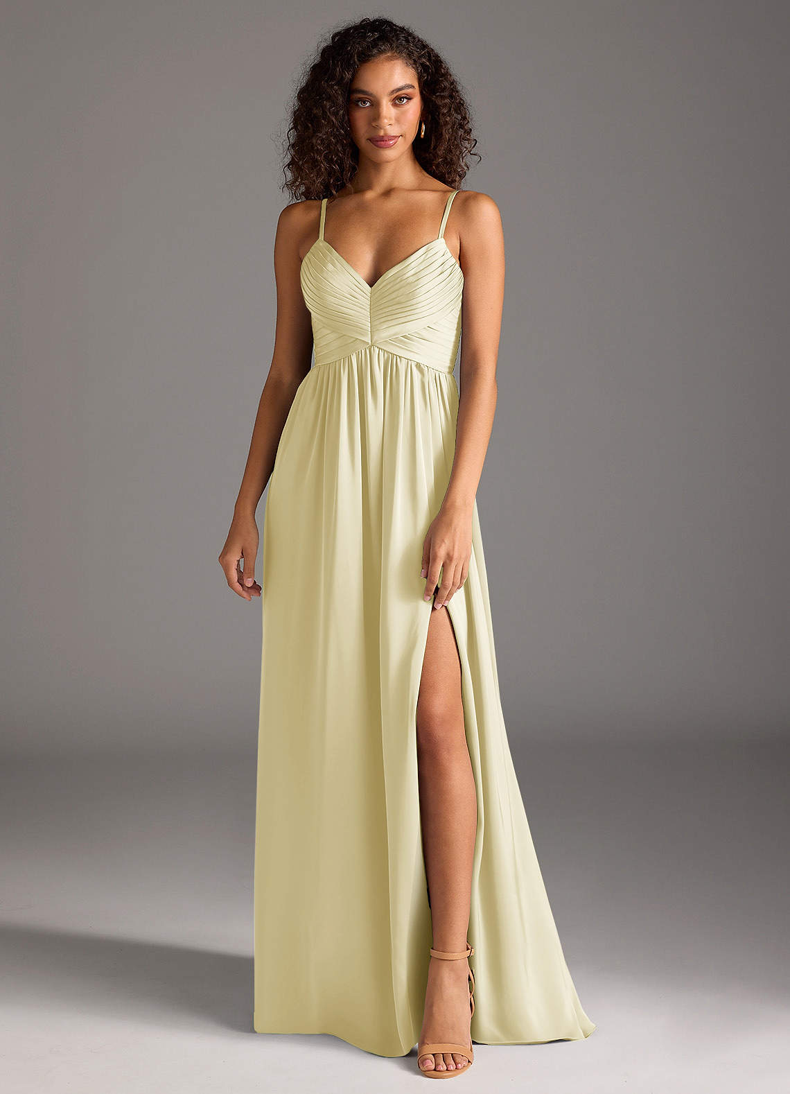 Robe Trapèze en Satin extensible Plissée Sorbet Citron