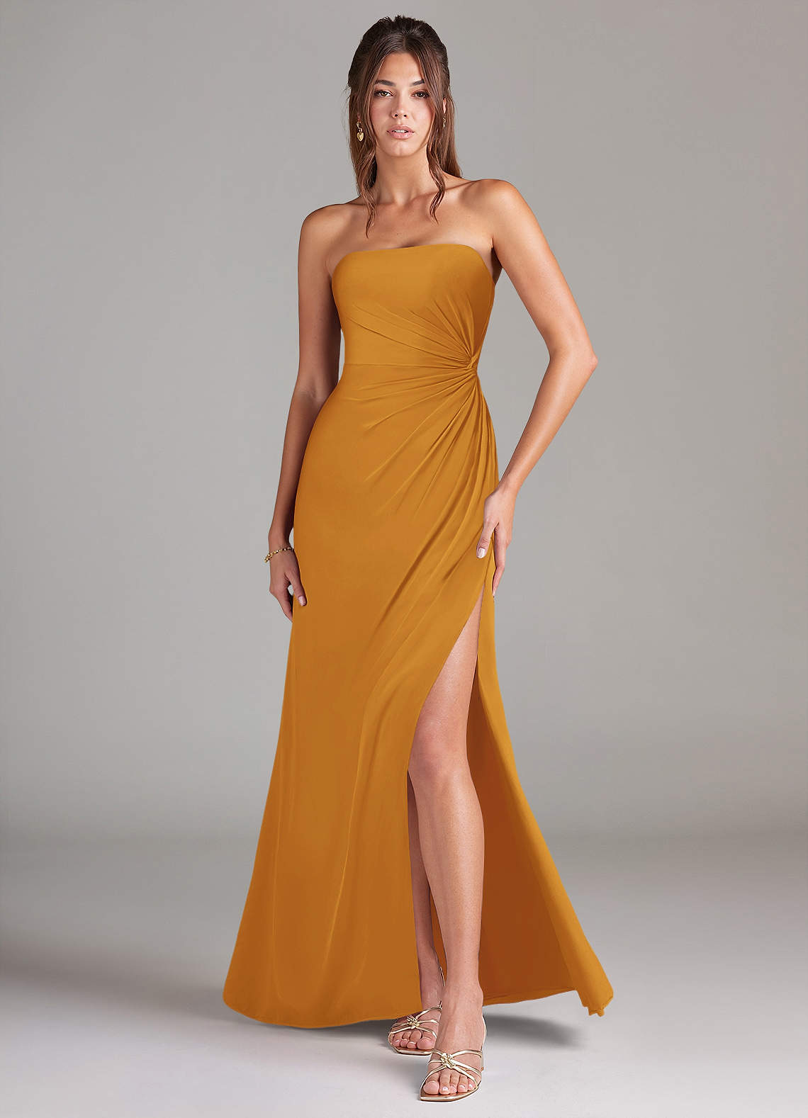 Robe Fourreau Convertible en Mousseline de soie Sans bretelles Caramel écossais