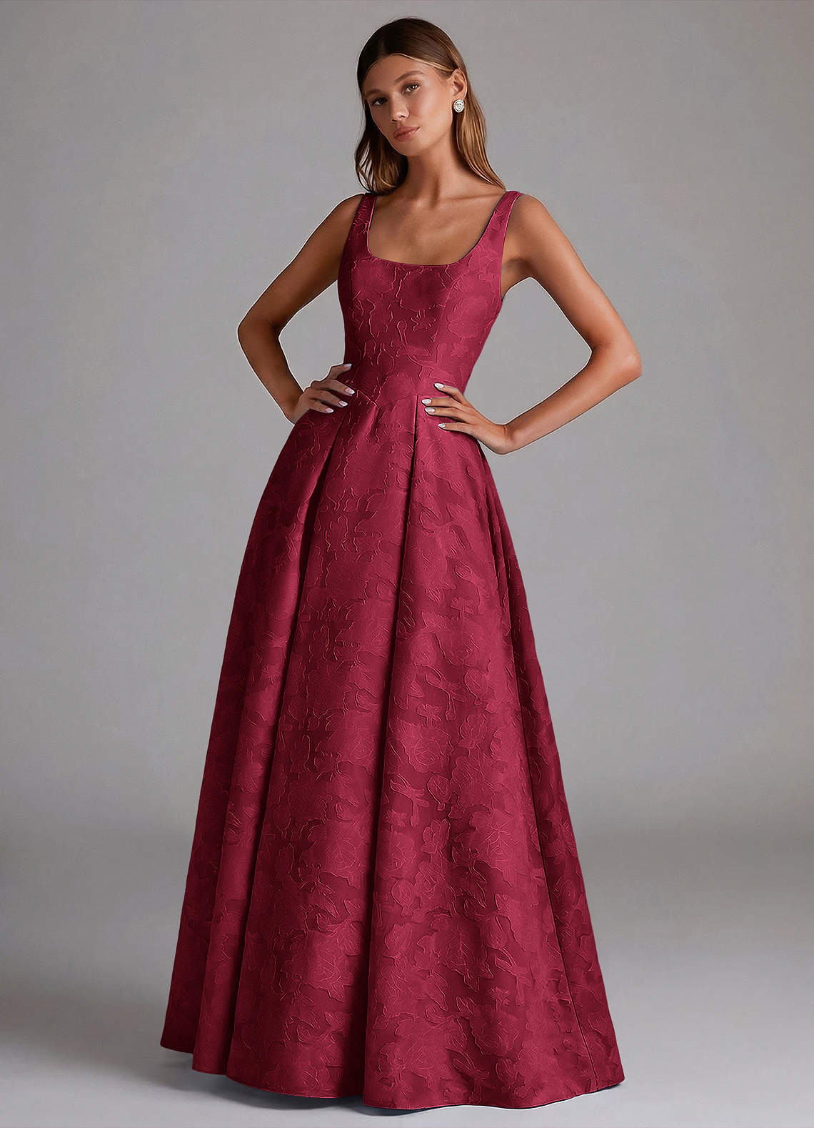 Robe Trapèze en Blumen-Burnout Plissée Bourgogne