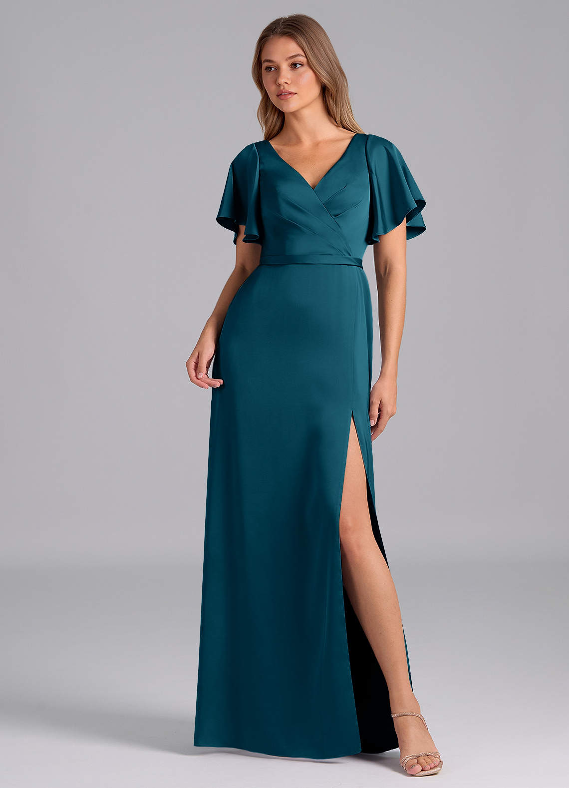Robe Trapèze en Satin extensible Plissée Bleu Encre