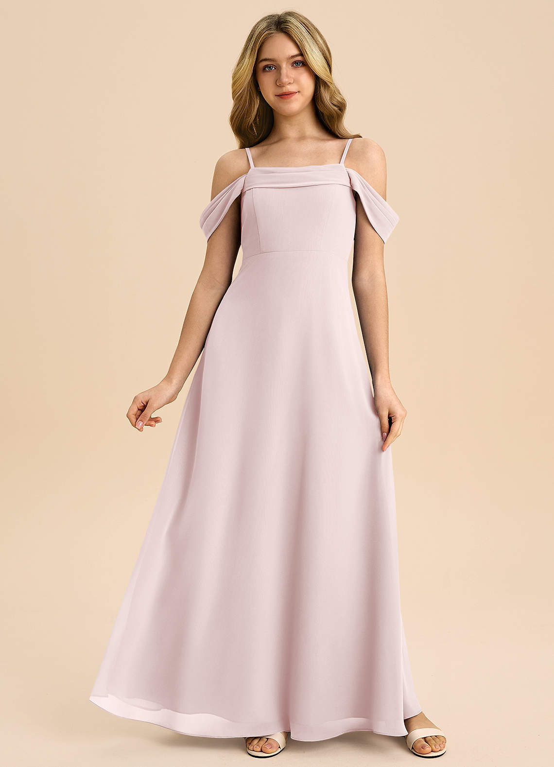 Robe Trapèze en Mousseline de soie Épaule décolletée Rose Pâle