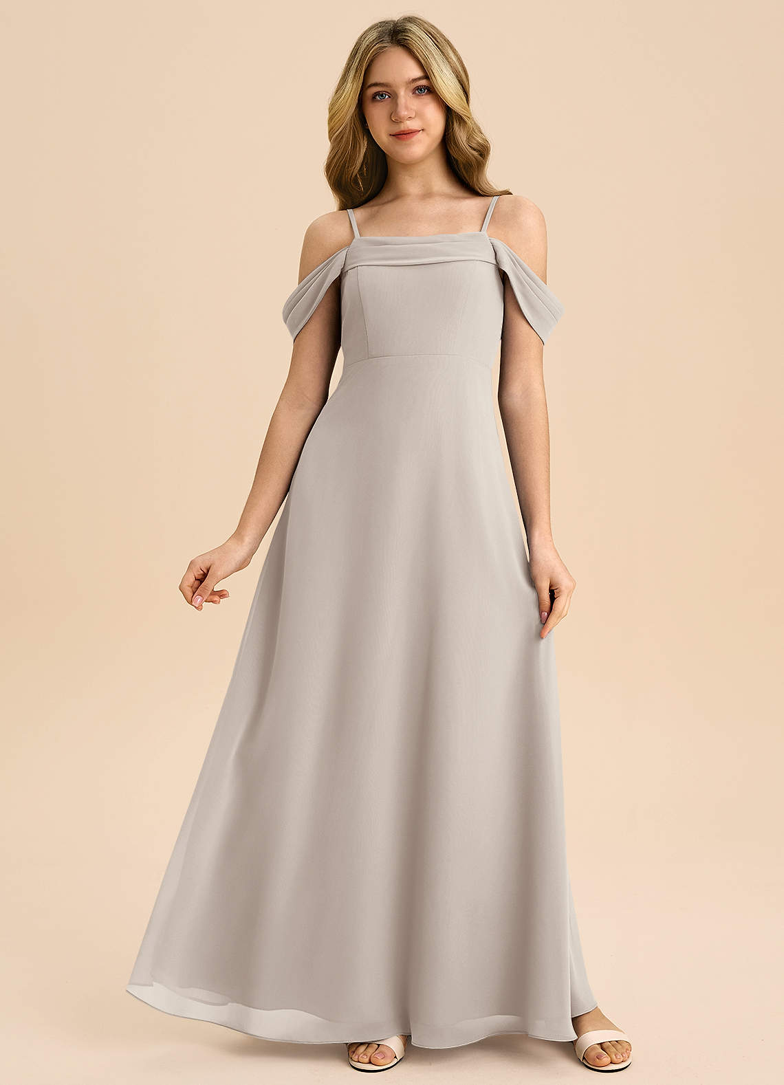 Robe Trapèze en Mousseline de soie Épaule décolletée Givre