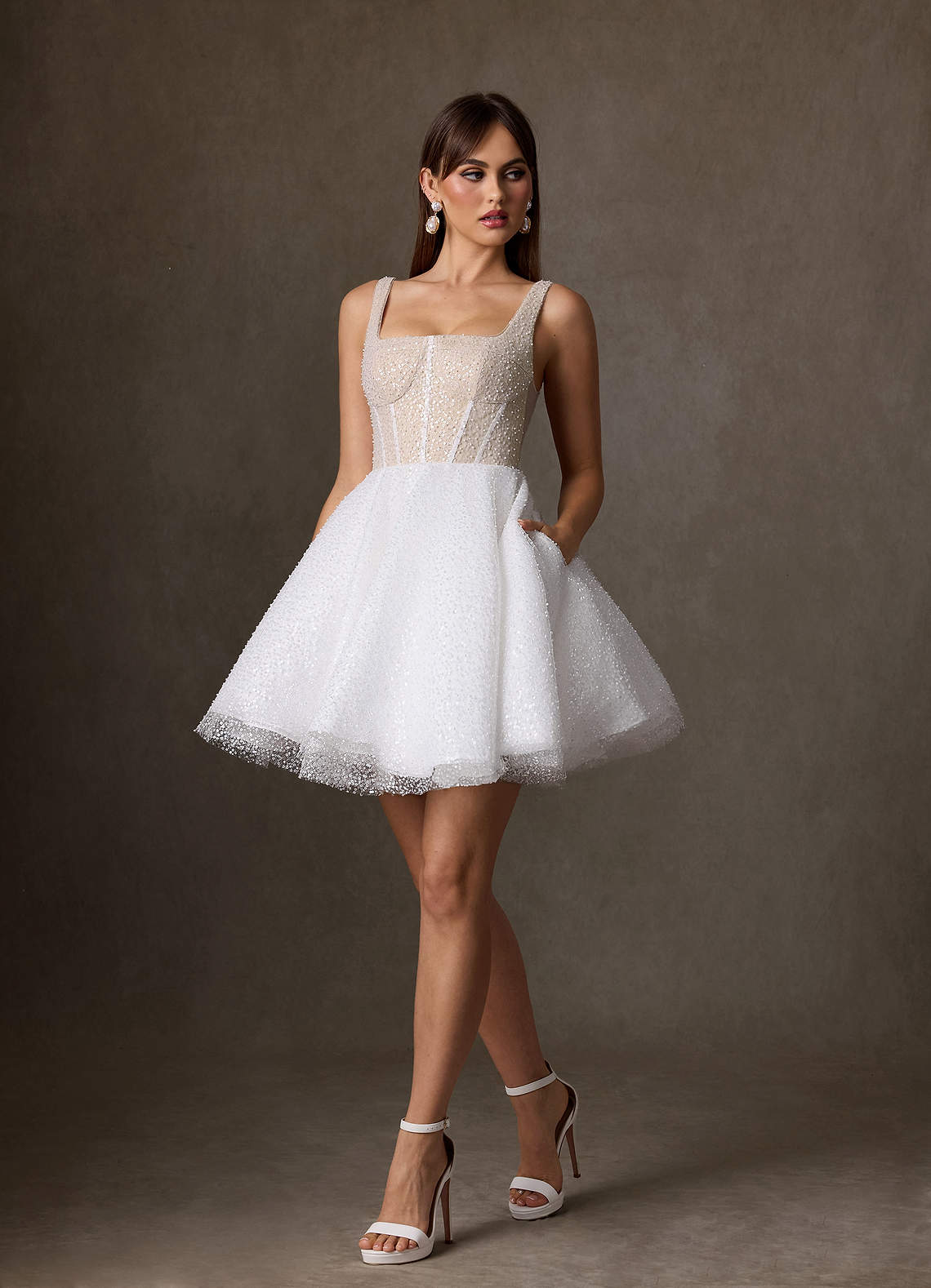 Robe Trapèze en Perlage avec poches Diamant Blanc Champagne