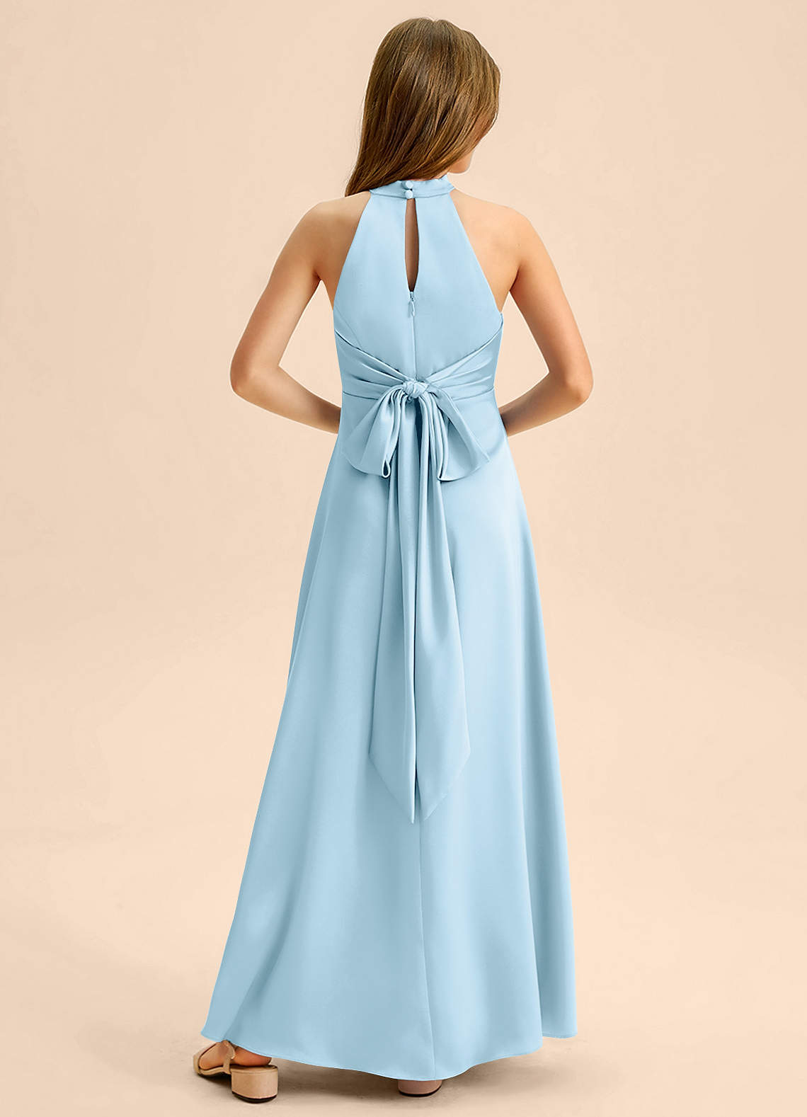 Robe Trapèze en Satin extensible Plissée Bleu Ciel